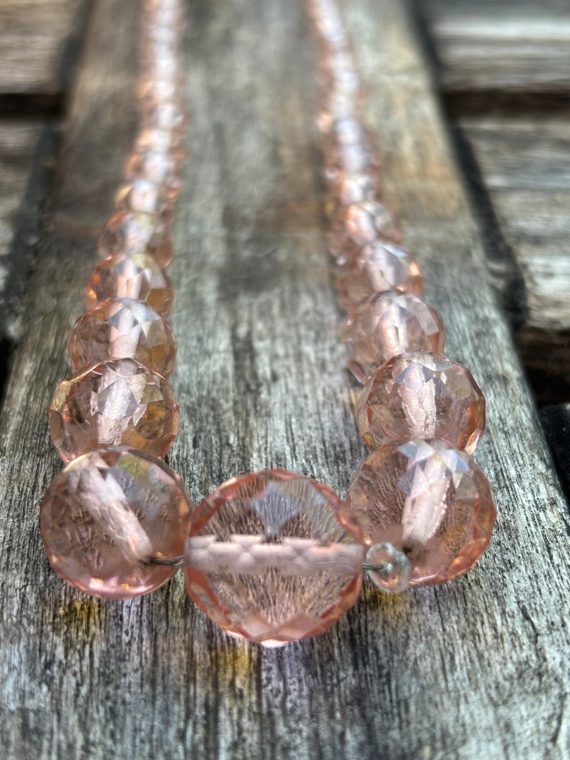 Vintage 1940s glass necklace on sterling chain with brass original clasp